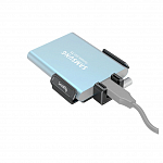 На 4K- и 6K-моделях линейки Pocket Cinema используются стандартные съемные батареи LP‑E6, на модификации 6K Pro — NP-F570. В комплект поставки входит блок питания, который позволяет одновременно вести съемку и выполнять зарядку. Для защиты от случайного отсоединения кабеля предусмотрен фиксатор, а для совместимости с розетками разных стандартов есть специальные переходники. Порт USB-C поддерживает передачу энергии в компенсационном режиме, поэтому через него камеру легко подключить к автономному источнику, ноутбуку или адаптеру для мобильного телефона. Если необходимо иметь одновременный доступ к двум аккумуляторам для работы в течение всего дня, достаточно установить дополнительную рукоятку.